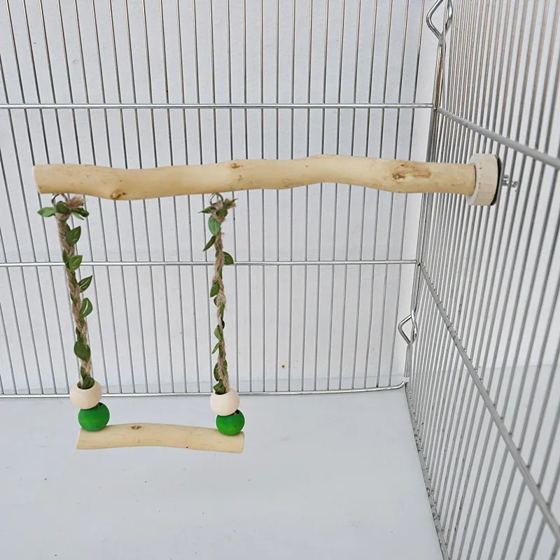 Wood Parrot Stand Pole Double Layer Swing Toy for Bird Tiger Skin Claw Grinding Beak Grinding Stand Pole Bird Cage Accessories